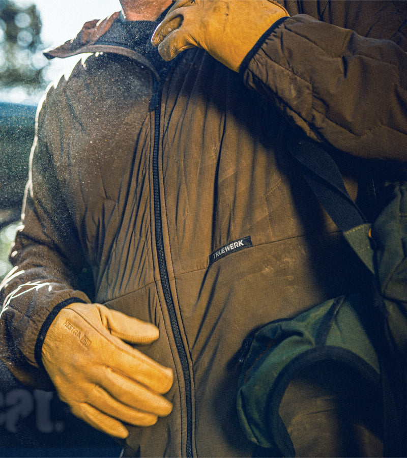The Woobie Hoodie packs 80g of synthetic fill into a low-profile frame. Built like a shield, it carries that legendary woobie comfort—steady, reliable, and calm in rough conditions. With water-shedding protection and cuff gaskets to seal out cold, it’s more than a midlayer—it’s your shelter.